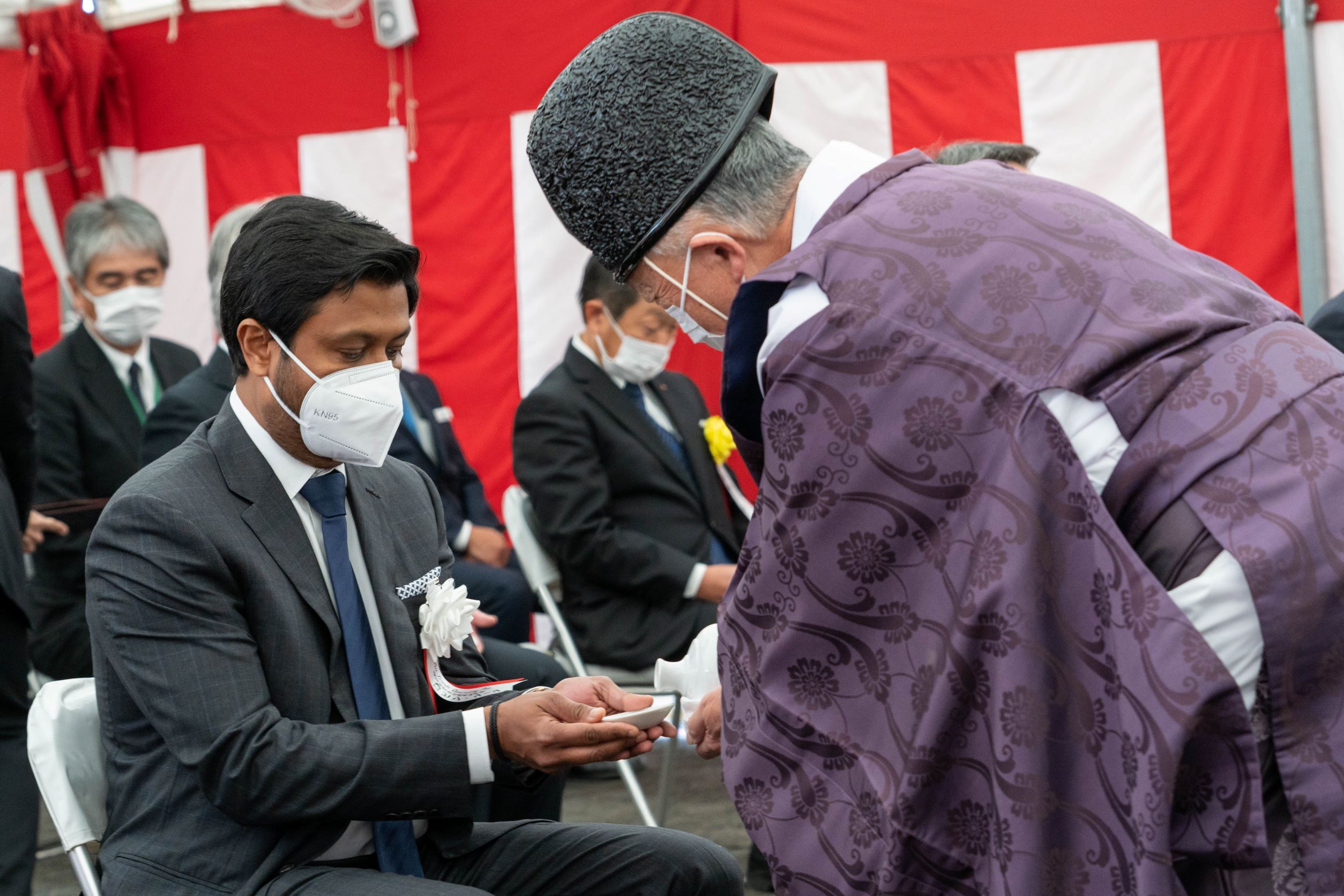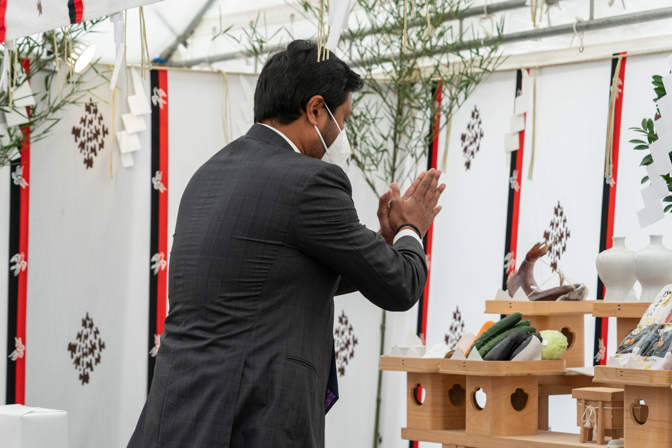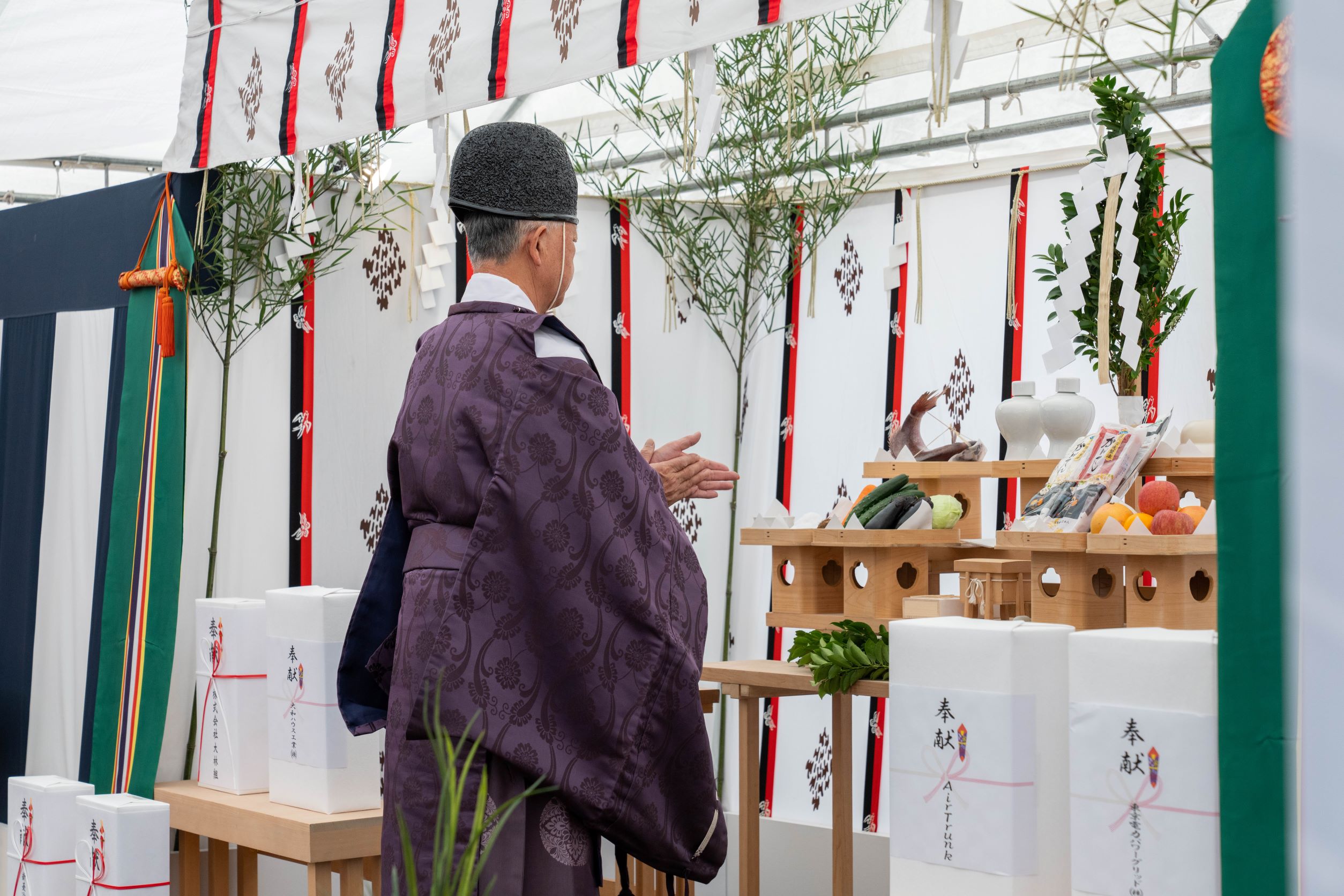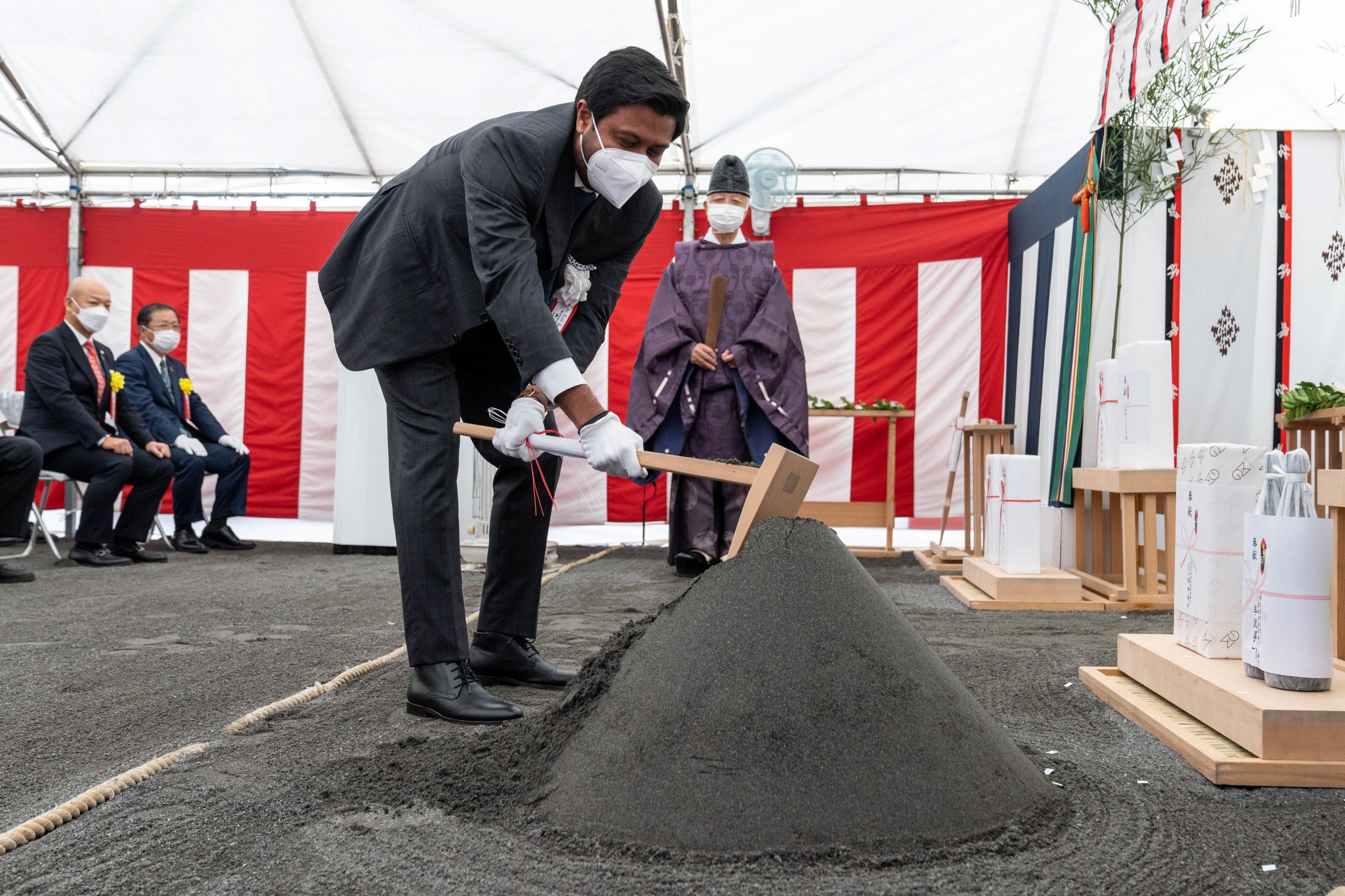 伝統的な形式に則って神官が土地を清め、工事が安全に、無事に完了することを祈願しました。